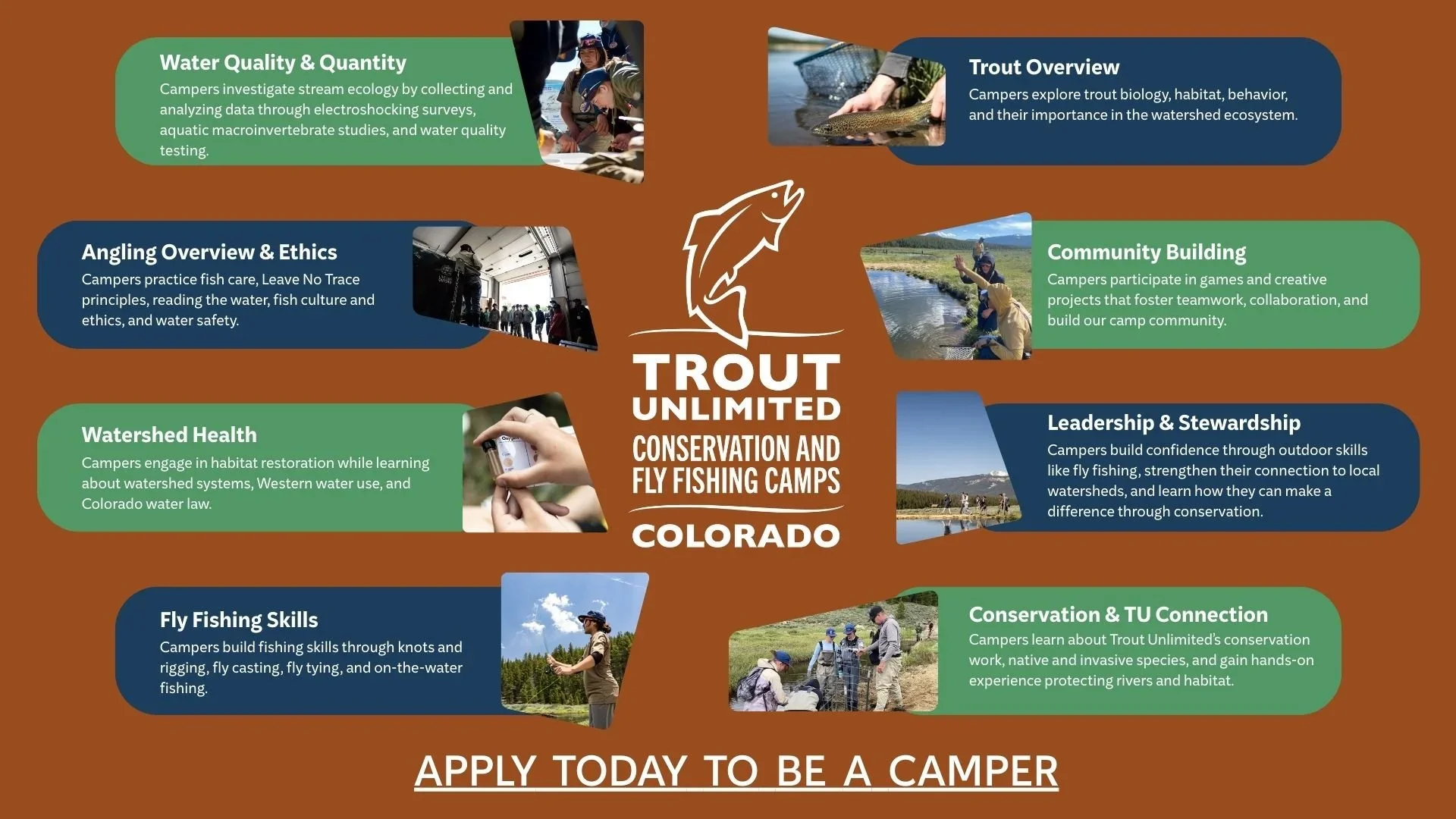 We are excited to announce that registration is now open for our 2026 River Conservation and Fly Fishing Camp. Camp will be June 14 - 20, 2026 at AEI Base Camp, Almont CO.