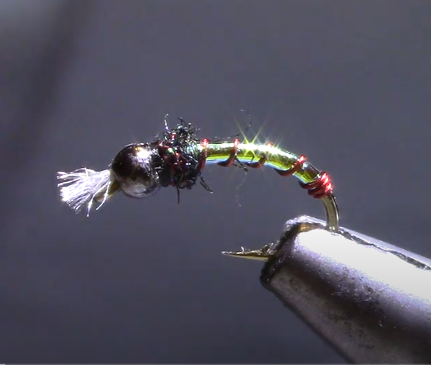 "Based on Phil Rowley's Chromie, this is a good choice for those large trout that cruise shallow water after ice-off. One of the best tactics is to fish this fly under an indicator. Chironomids are often fished by suspending the nymph just above the lake bottom, but the reflective design imitates the shiny emerging pupa, so explore the entire water column."