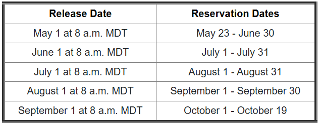 June 1st at 8 a.m. MDT to purchase entry for dates July 1st through July 31st.